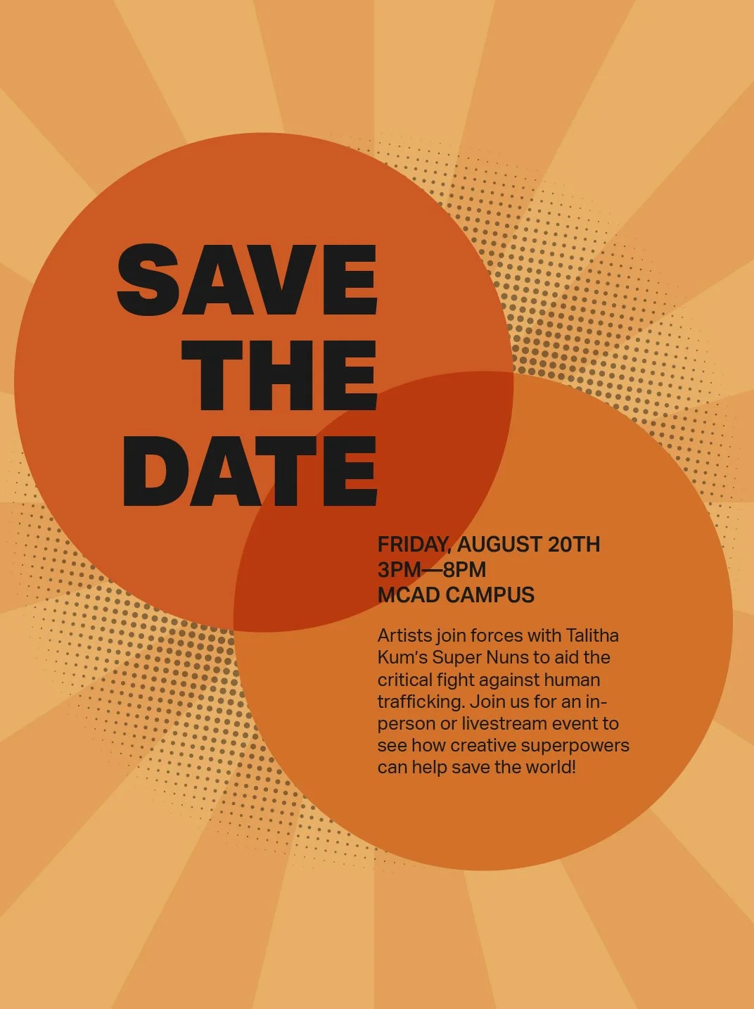 Joining Forces: The Super Artist Exhibition began in 2021 when the CCO of Edelman, the world's largest public relations firm, reached out to faculty member Nancy Rice. At the time, Edelman was working with Talitha Kum, a network of more than 2,000 nuns stationed in 70 countries, who identify, rescue and rehabilitate people who have endured forced prostitution or slave labor, often accompanied by beatings, starvation, and other abuse. In an effort to assist, Edelman created a Super Nuns page on Patreon, but still needed help raising awareness.